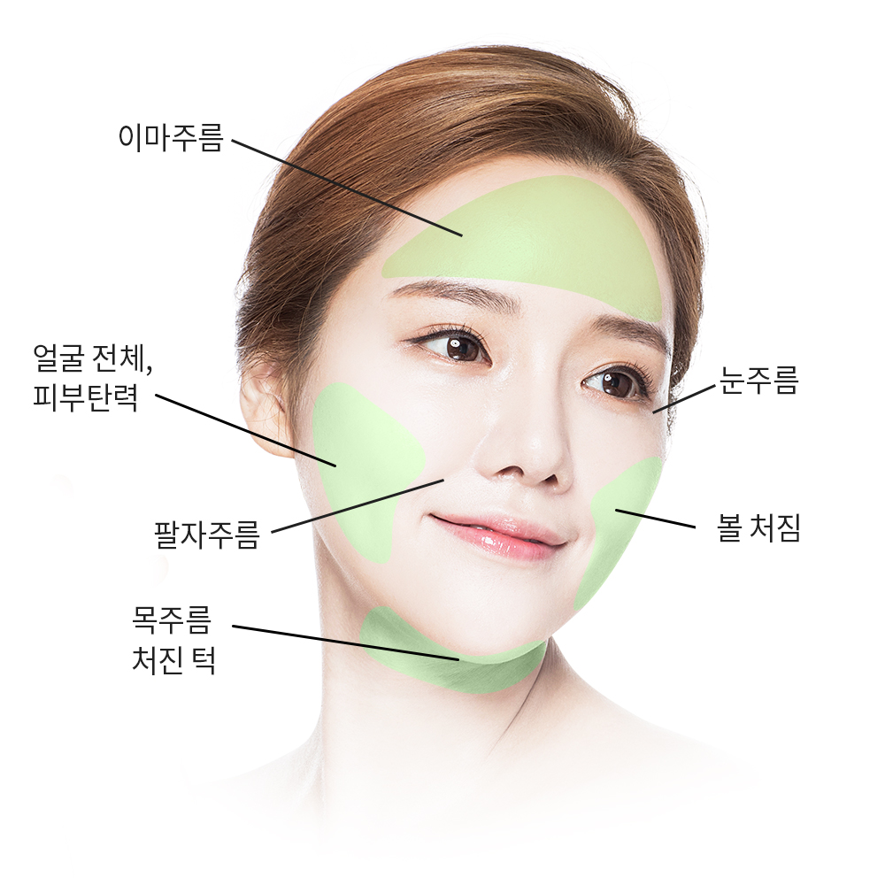 피부 표면에는 손상을 주지 않고, 고강도 집중 초음파 에너지가 표피, 진피 뿐만 아니라 피부 속 깊이 SMAS층까지 도달하여 절개 과정 없이 얼굴 전체의 주름 및 리프팅 개선 효과를 높이는 시술이며, 수술 방식과는 달리 흉터가 남지 않고 회복기간은 거의 필요 없습니다.