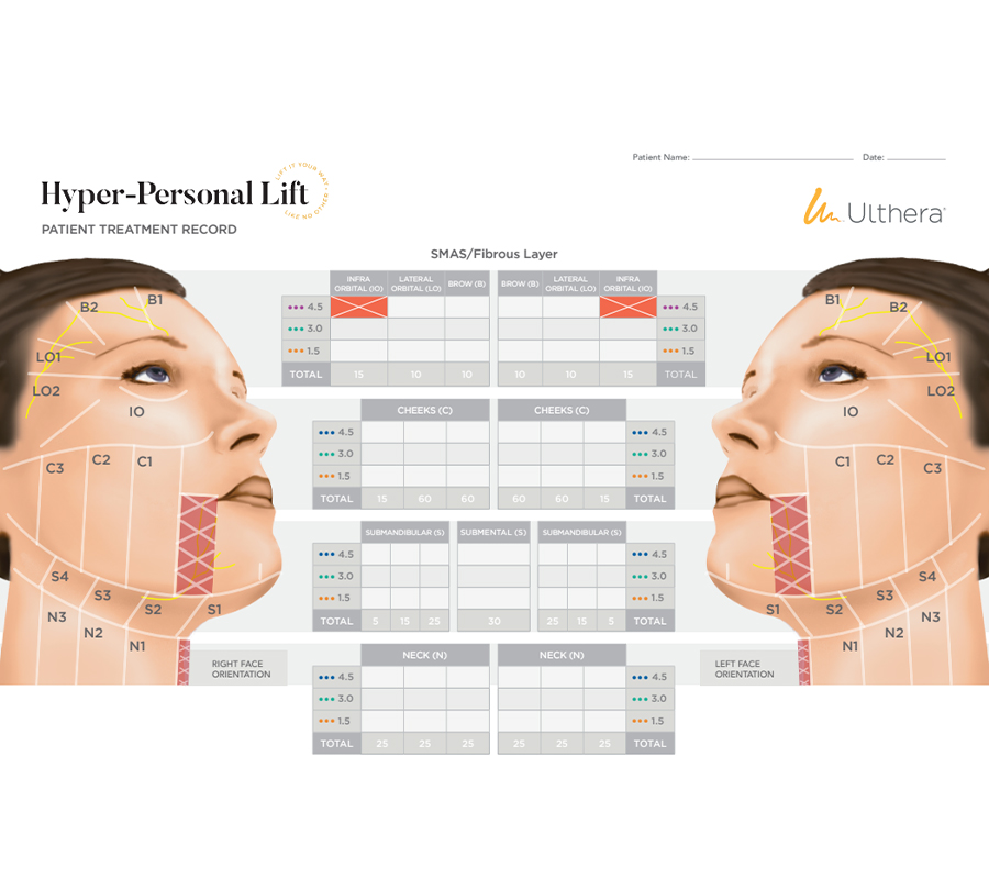 • 3단계: 초음파로 피부층을 확인하고 사용할 팁과 샷 수를 정확하게 계획합니다.